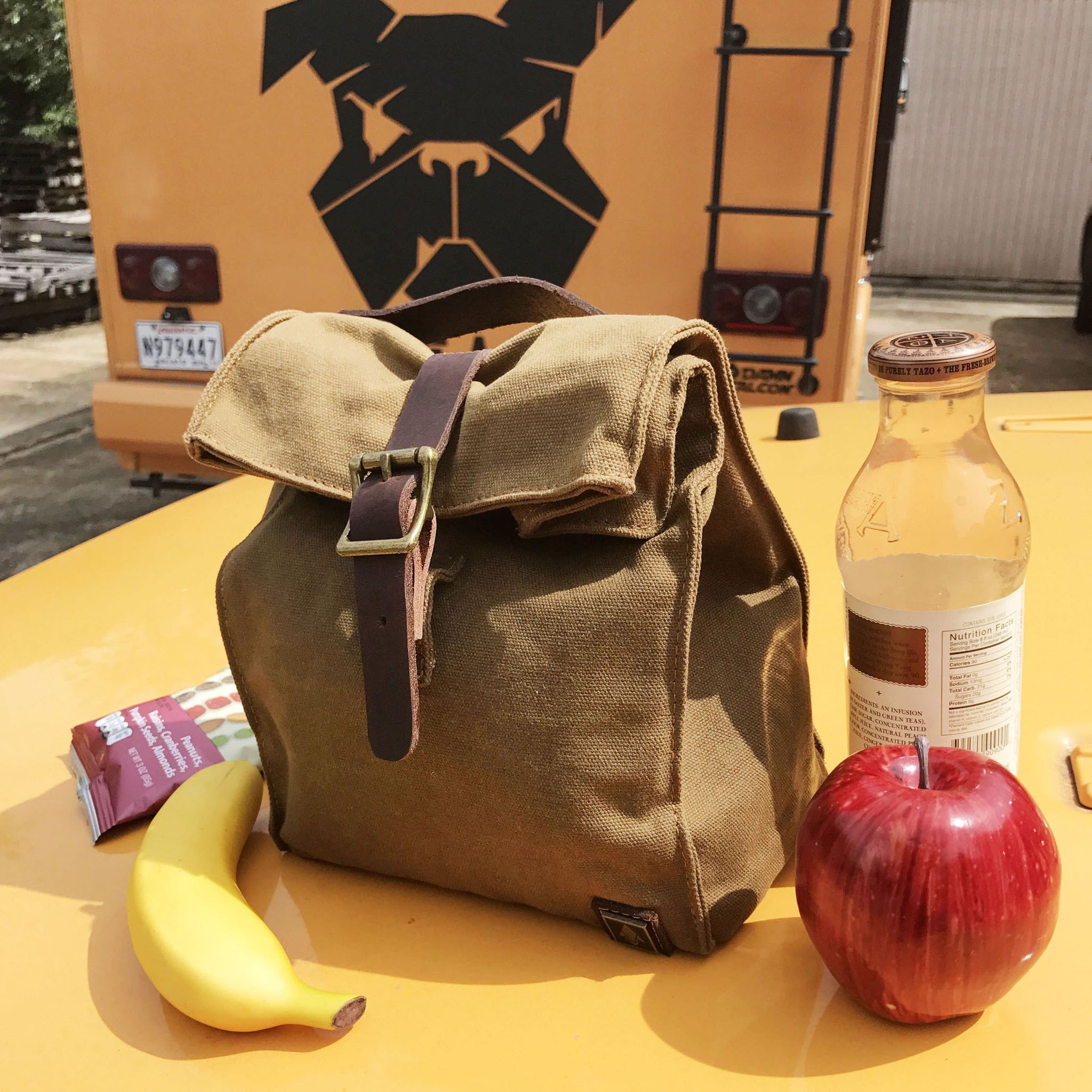 Modeled after everyone’s favorite brown paper bag, but constructed with durable waxed DamnDog Swamp Canvas and thick leather accents, this insulated lunch tote will become a family heirloom that will carry your grandchildren's leftovers in class.